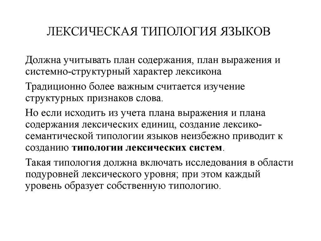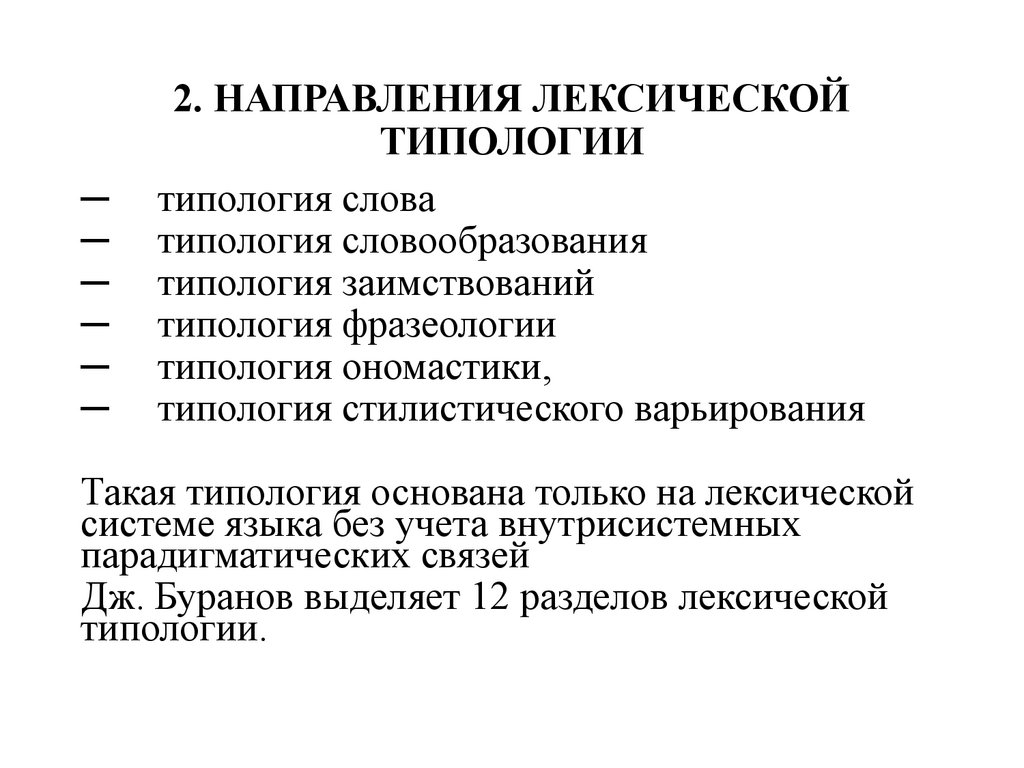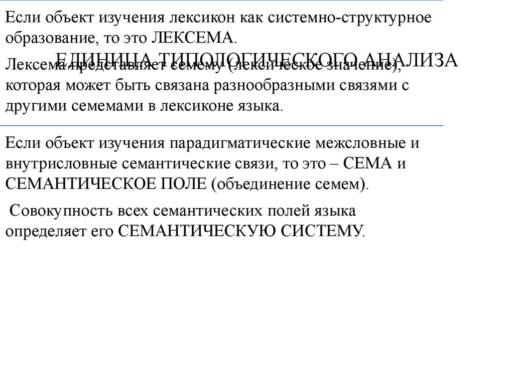 ТИПОЛОГИЯ ЛЕКСИЧЕСКИХСИСТЕМ РУССКОГО И