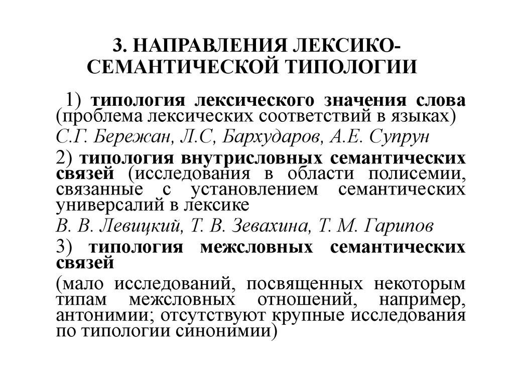 3. НАПРАВЛЕНИЯ ЛЕКСИКОСЕМАНТИЧЕСКОЙ ТИПОЛОГИИ1) типология лексического значения слова