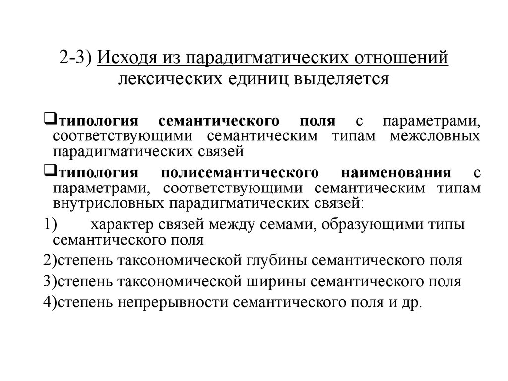 2-3) Исходя из парадигматических отношенийлексических единиц выделяется
