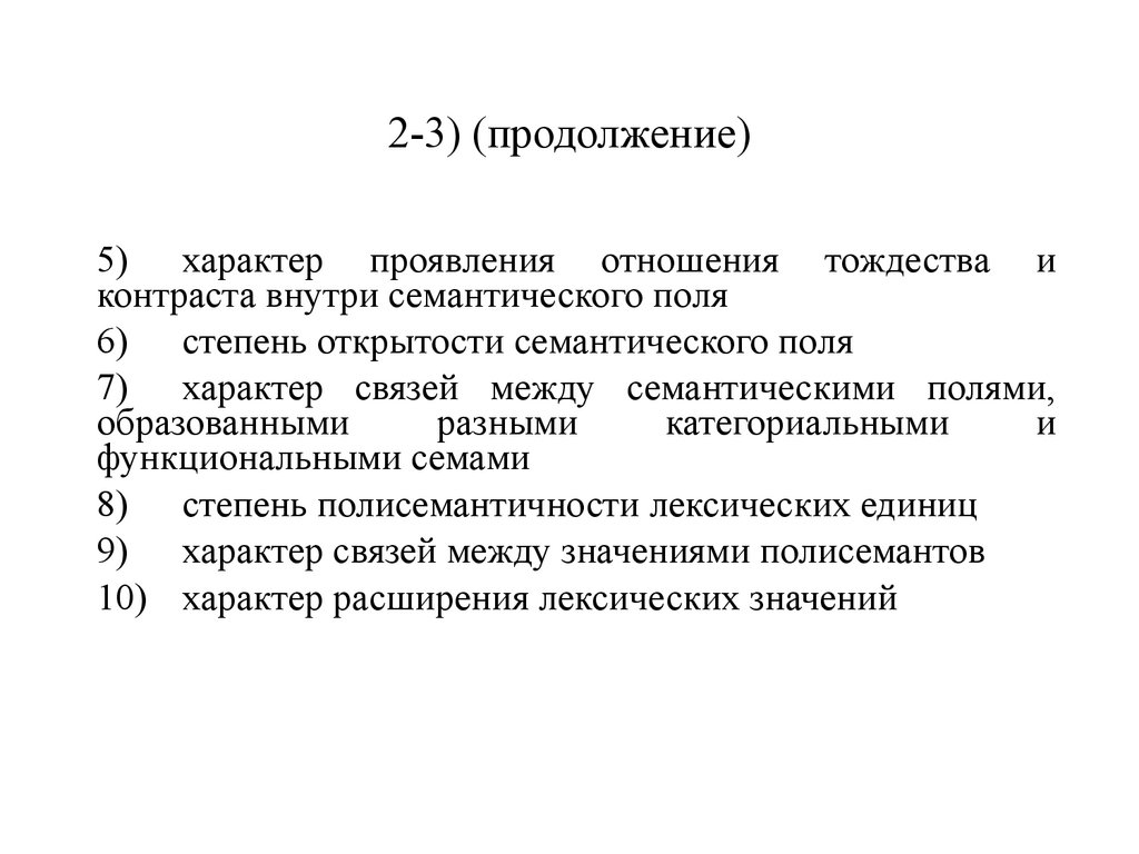 2-3) (продолжение)5) характер проявления отношения тождества и