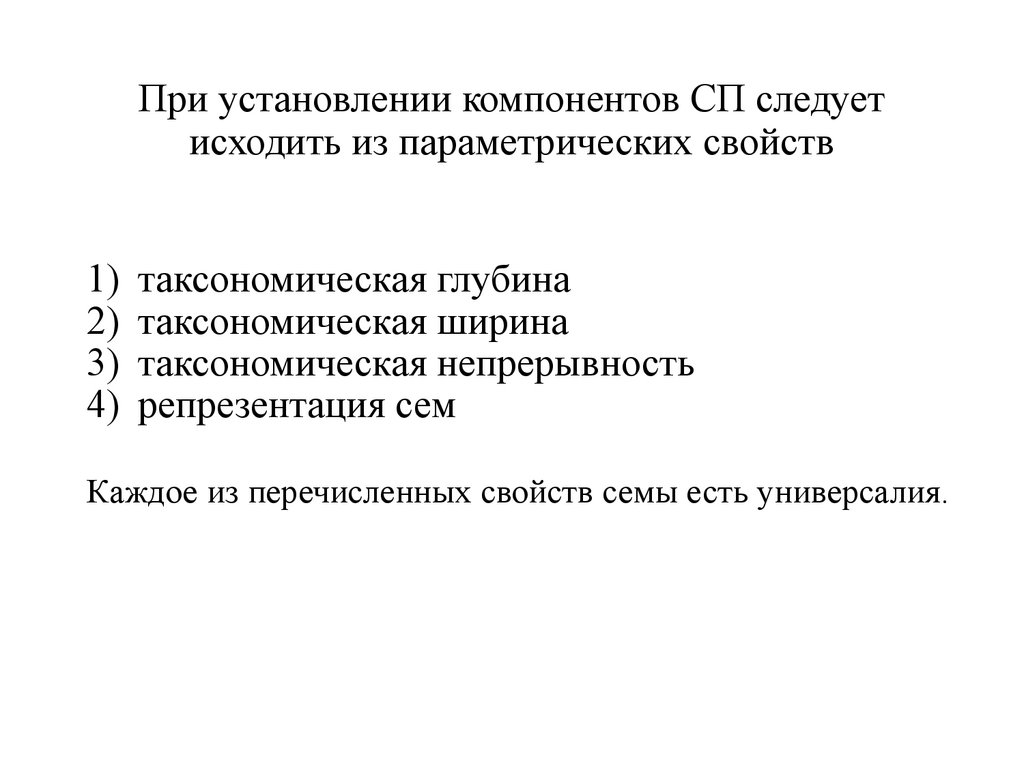 При установлении компонентов СП следуетисходить из параметрических свойств