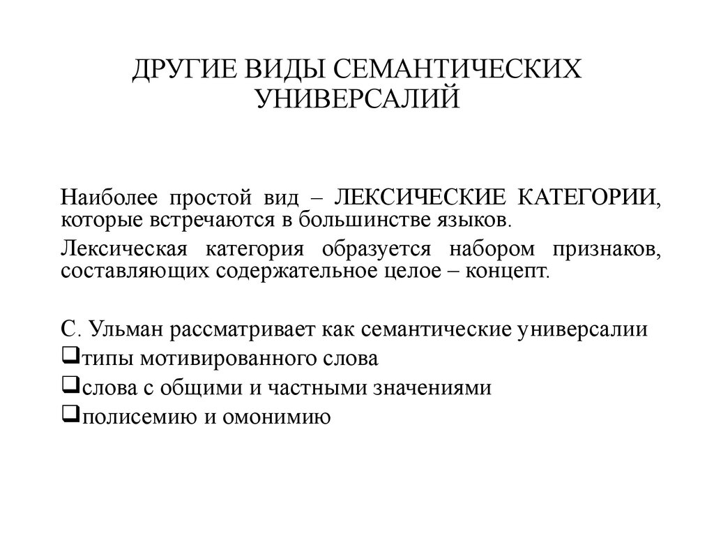 ДРУГИЕ ВИДЫ СЕМАНТИЧЕСКИХУНИВЕРСАЛИЙ
