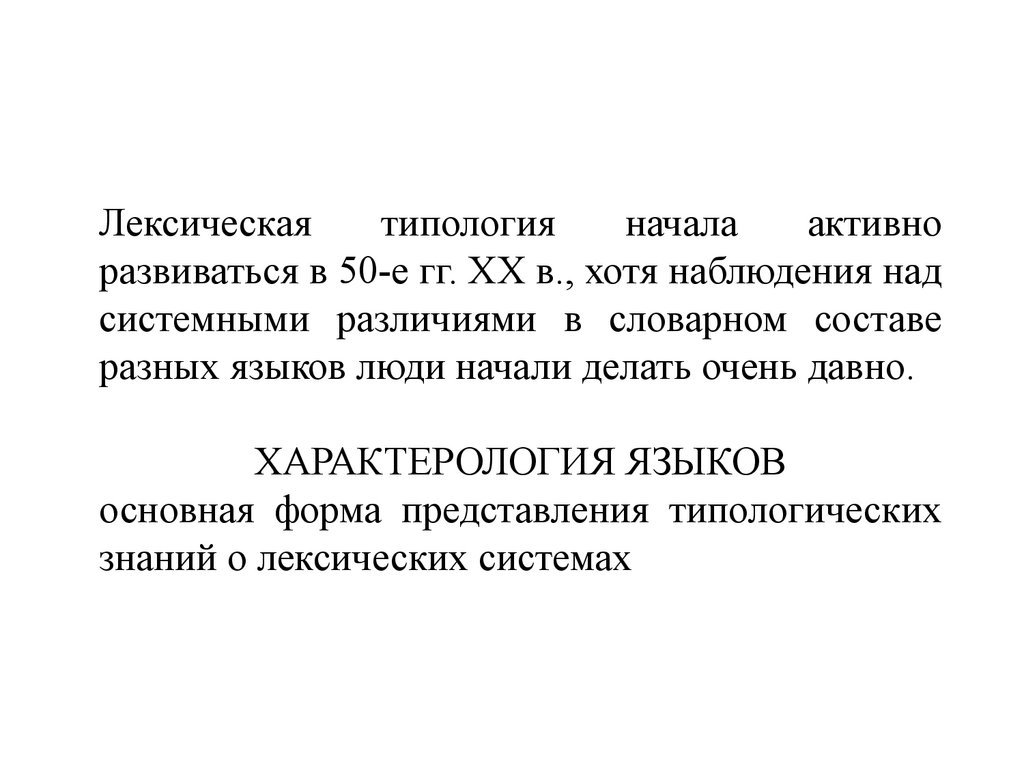 ПРОБЛЕМНОЕ ПОЛЕ ЛЕКСИЧЕСКОЙТИПОЛОГИИ
