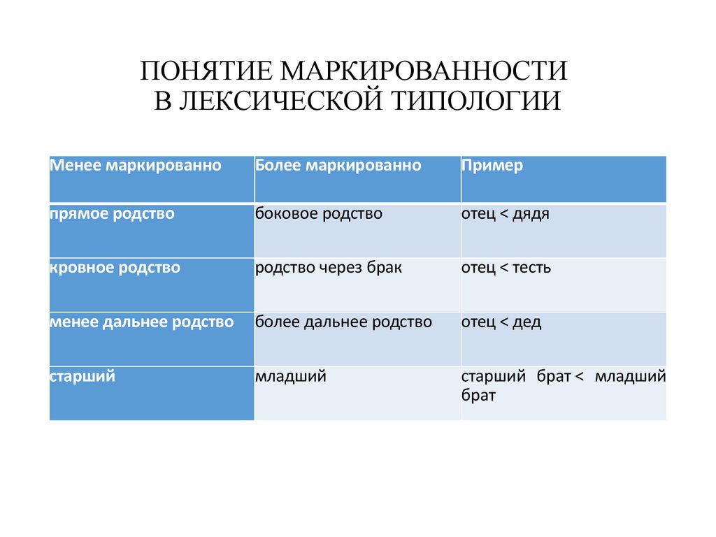 ПОНЯТИЕ МАРКИРОВАННОСТИВ ЛЕКСИЧЕСКОЙ ТИПОЛОГИИ