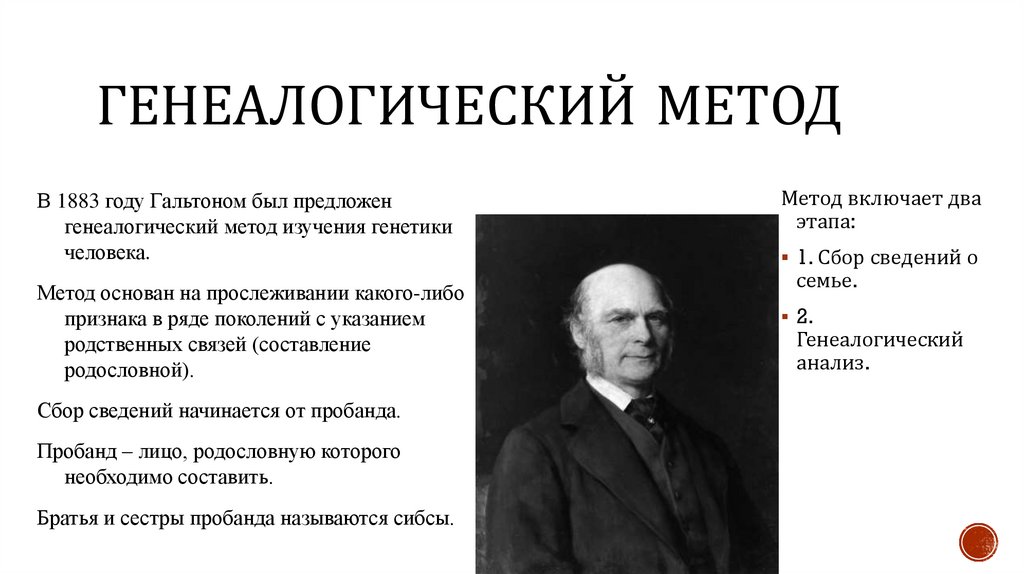ГЕНЕАЛОГИЧЕСКИЙ МЕТОДВ 1883 году Гальтоном был предложен
