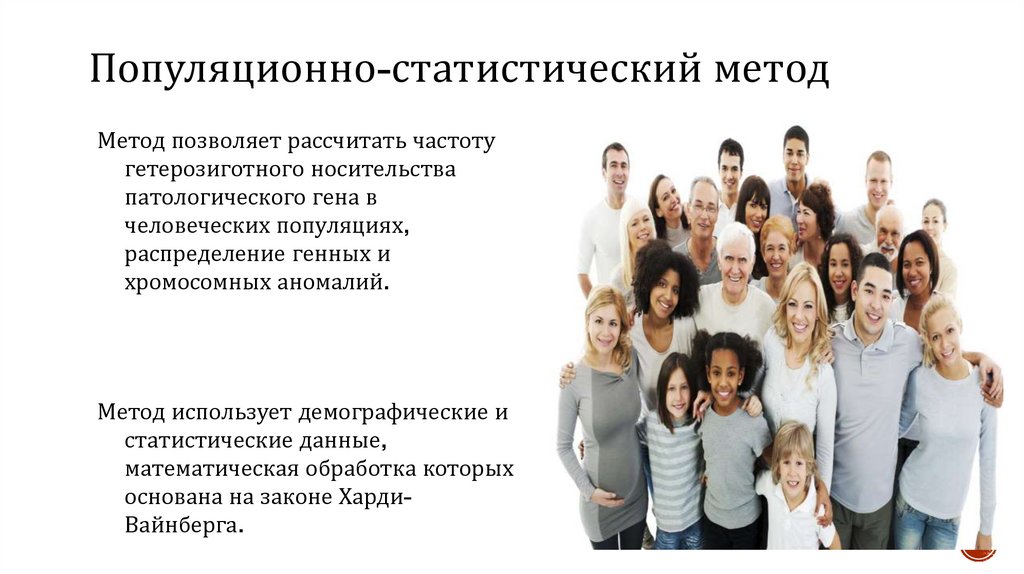 Популяционно-статистический методМетод позволяет рассчитать частоту