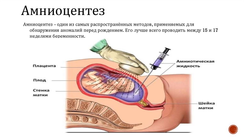 АмниоцентезАмниоцентез - один из самых распространённых методов, применяемых для