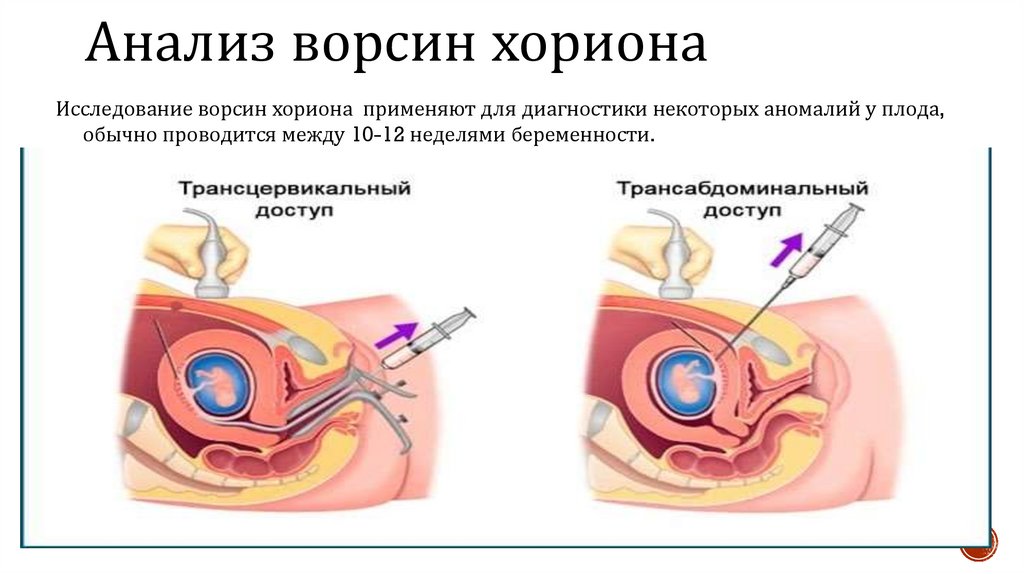 Анализ ворсин хорионаИсследование ворсин хориона применяют для диагностики некоторых аномалий у плода,