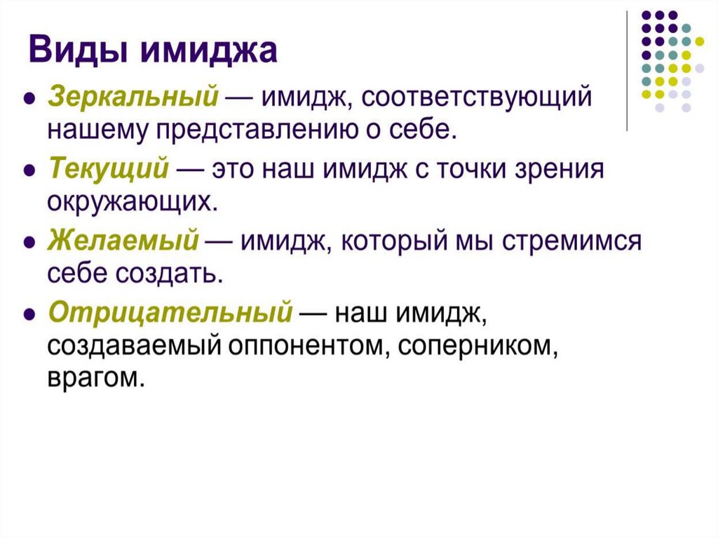 ИмиджСовокупность определённых качеств,сформировавшийся образ делового