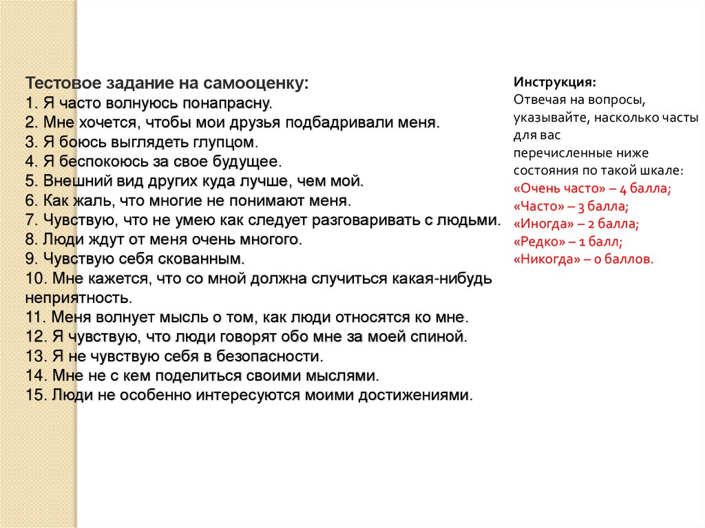 7. Чувствую, что не умею как следует разговаривать с людьми. «Иногда» – 2 балла;
