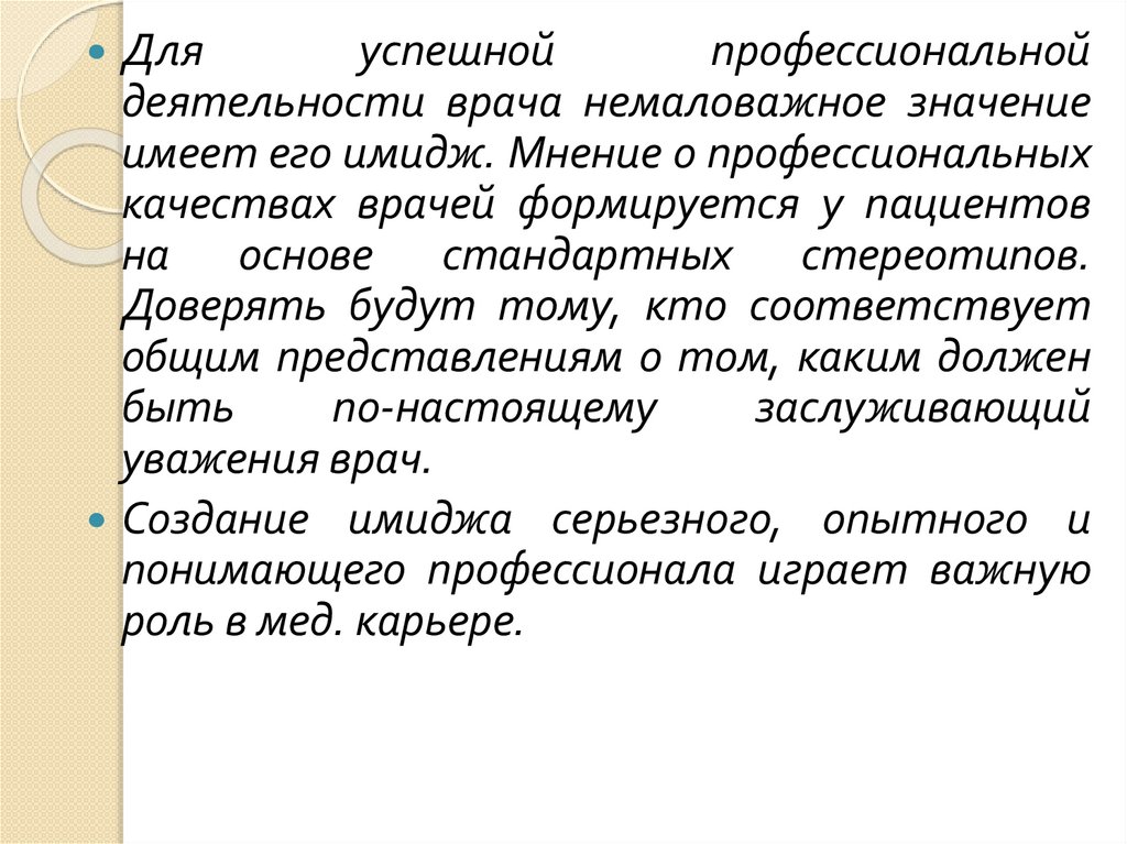 Ментальный имидж врача в основном определяетсяморально-этическими установками и ценностями,