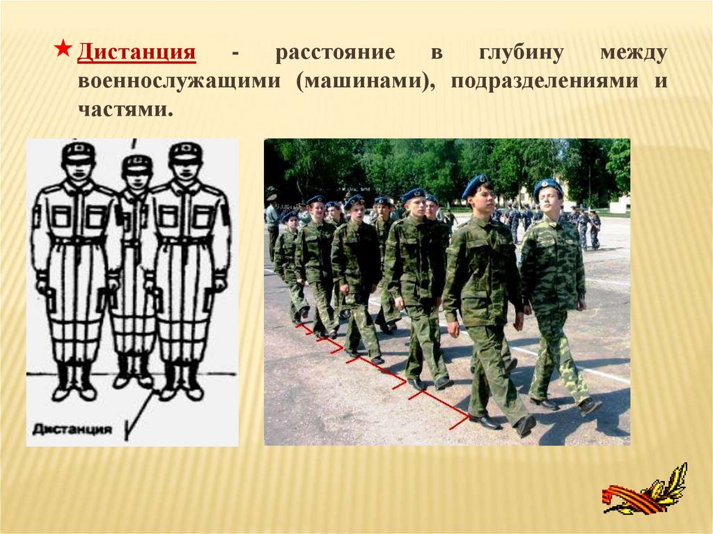 Глубина строя - расстояние от первой шеренги (впередистоящего военнослужащего) до последней