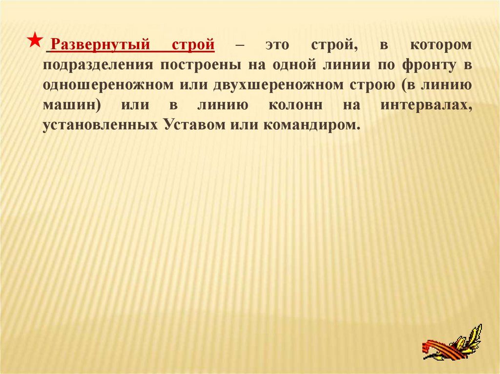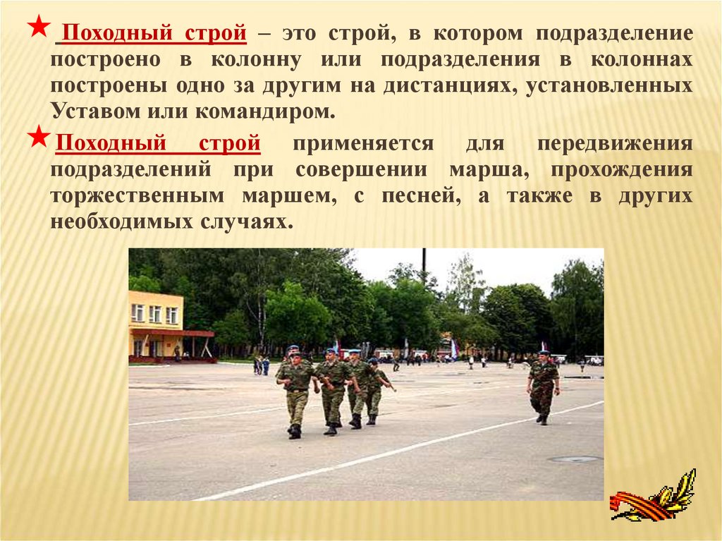 Походный строй – это строй, в котором подразделениепостроено в колонну или подразделения в колоннах