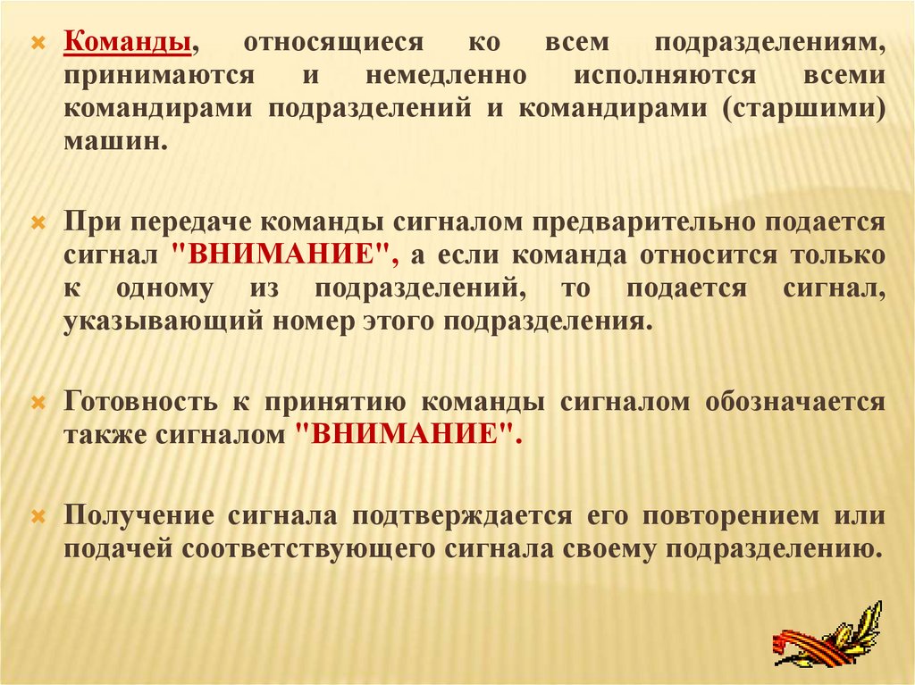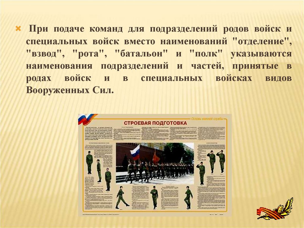 При подаче команд для подразделений родов войск испециальных войск вместо наименований "отделение",