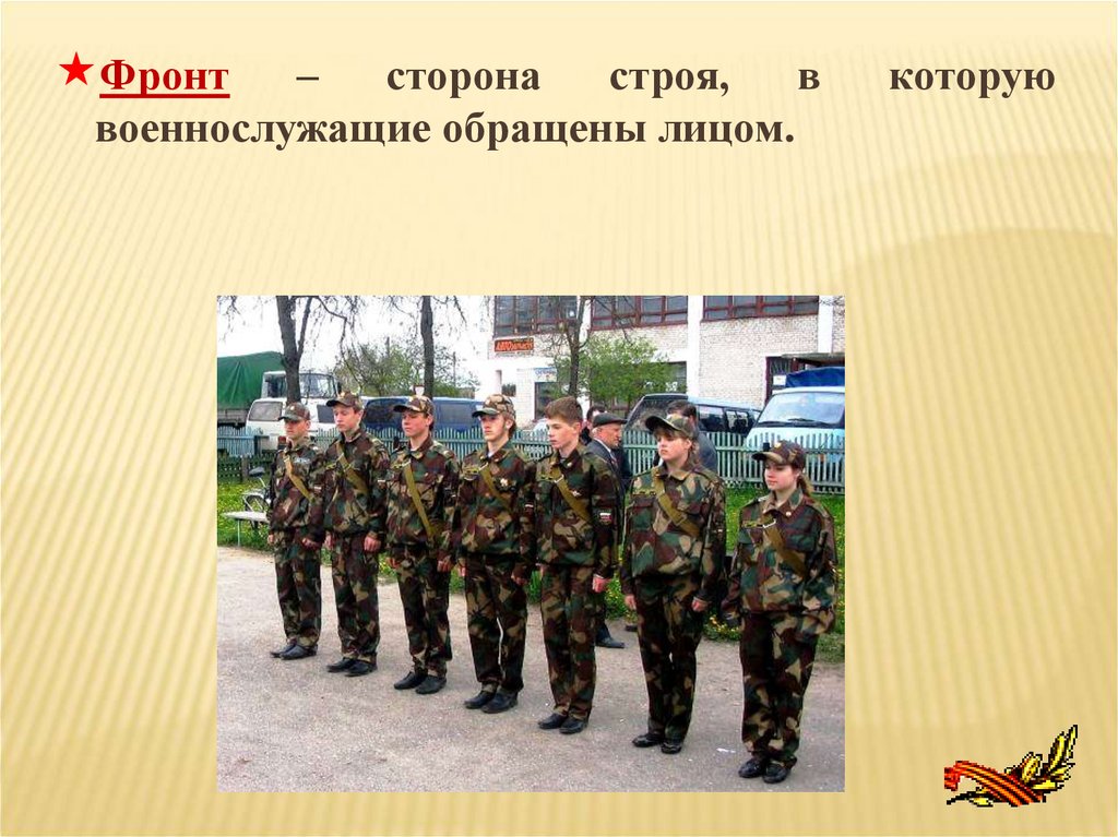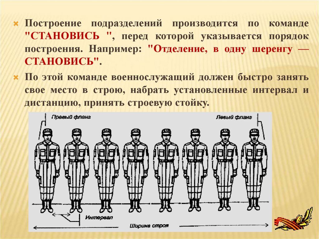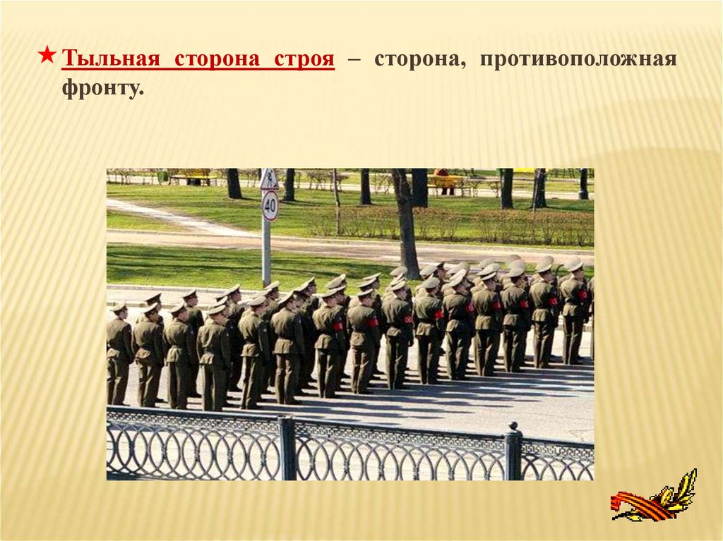 Строй, Шеренга, Фланг, Фронт, Тыльная сторона строя,