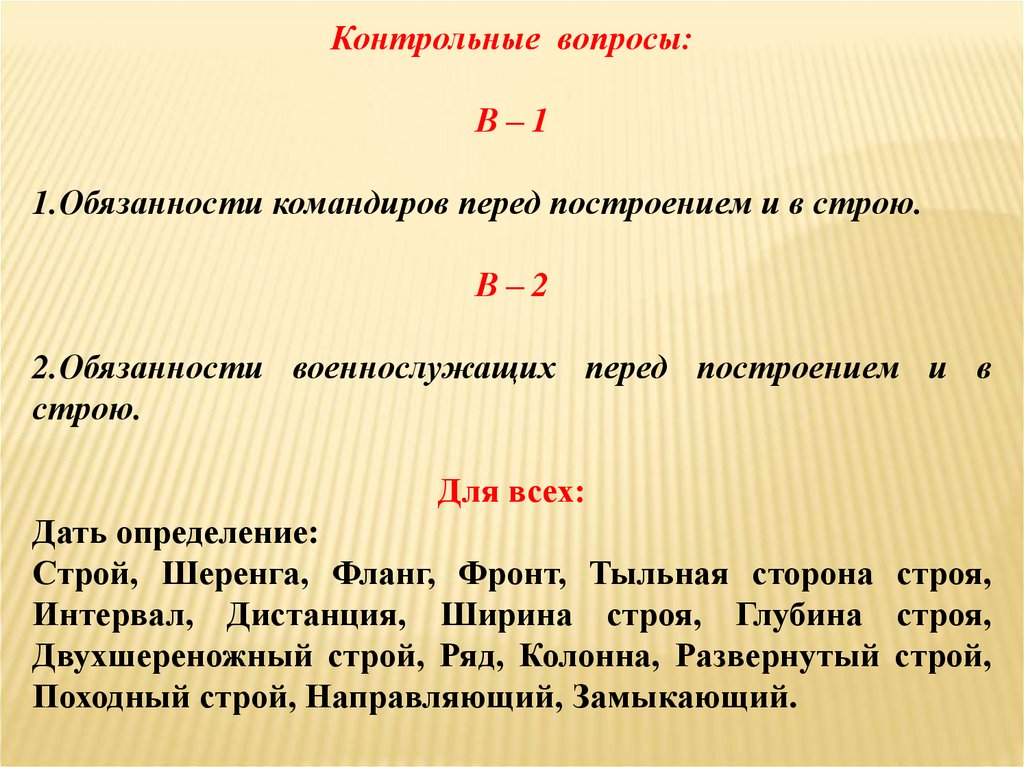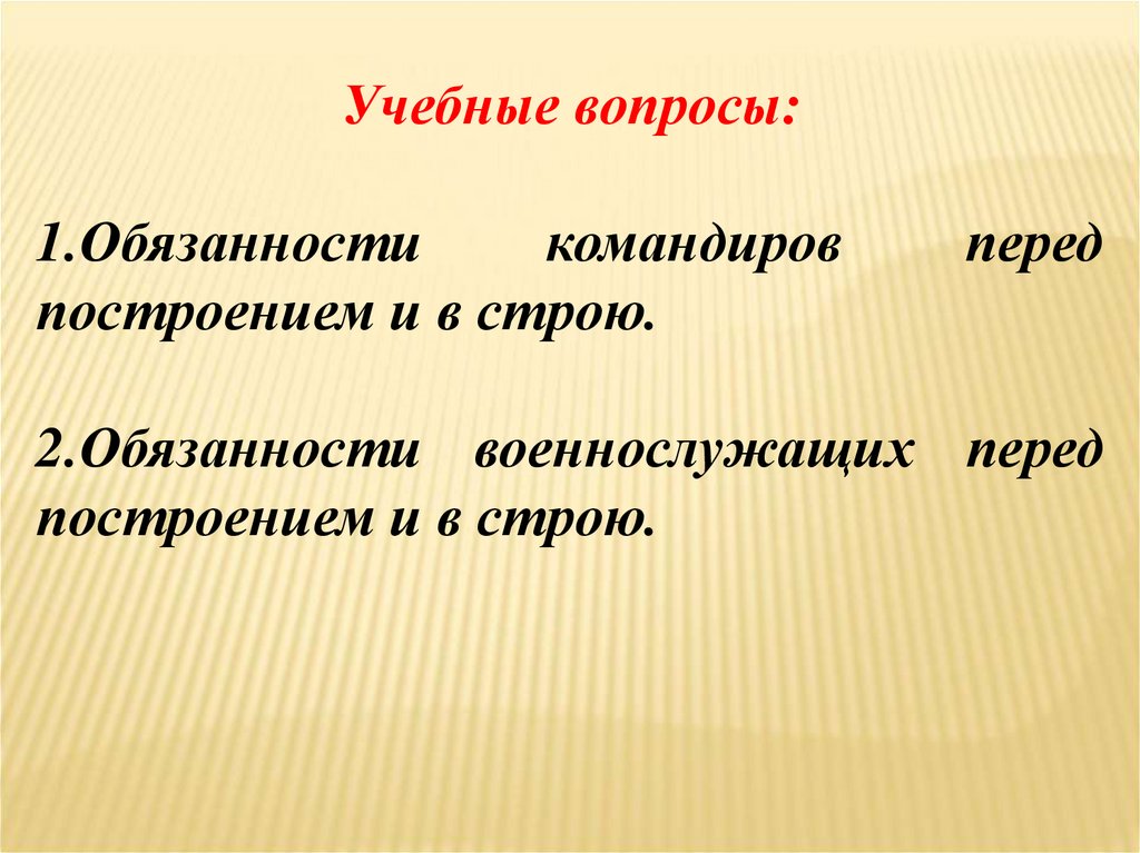 Учебные вопросы:1. Строи и управление ими, общие положения