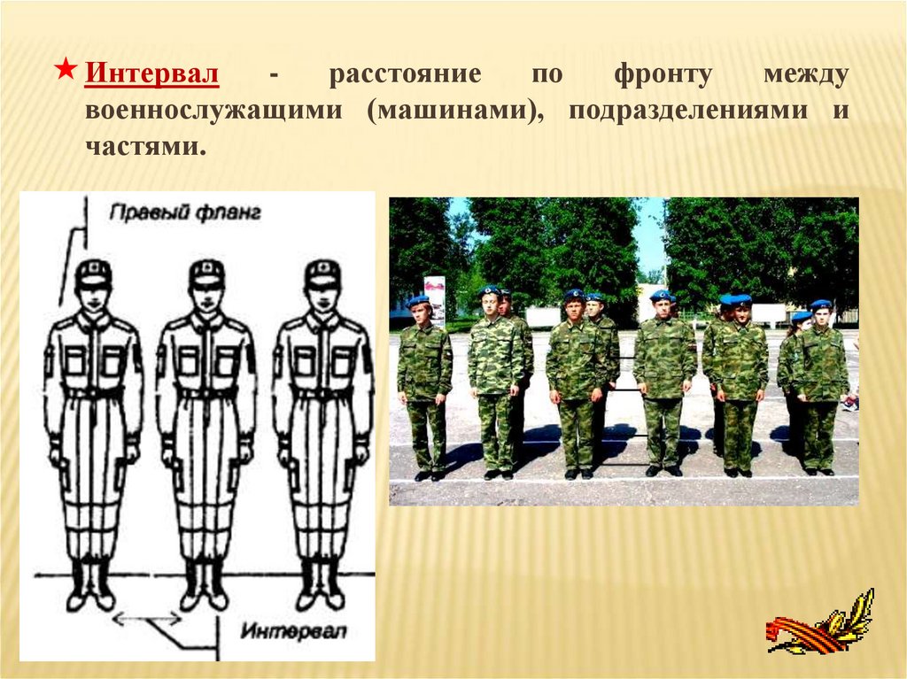 Интервал, Дистанция, Ширина строя, Глубина строя,