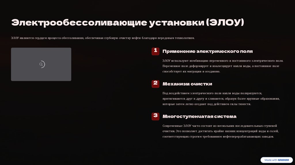 Электрообессоливающие установки (ЭЛОУ)ЭЛОУ являются сердцем процесса обессоливания, обеспечивая глубокую очистку нефти благодаря передовым технологиям.