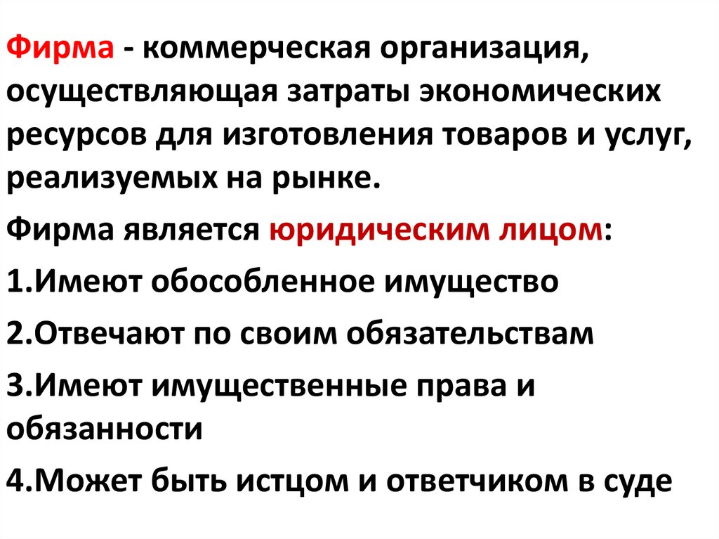 Фирма - коммерческая организация,осуществляющая затраты экономических