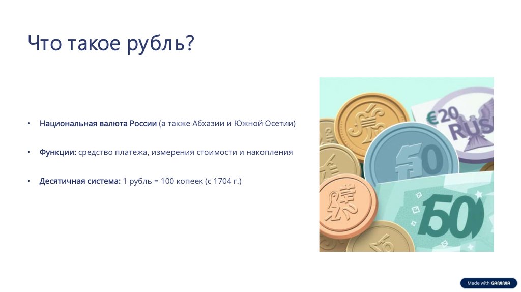 Что такое рубл ь?Национальная валюта России (а также Абхазии и Южной Осетии)
