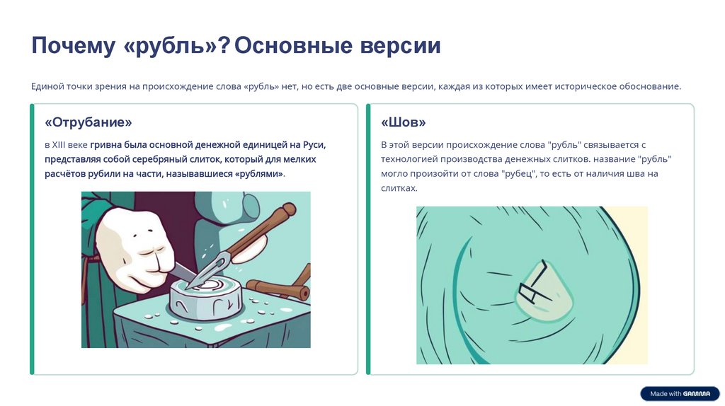 Почему «рубль»? Основные версииЕдиной точки зрения на происхождение слова «рубль» нет, но есть две основные версии, каждая из которых имеет историческое обоснование.