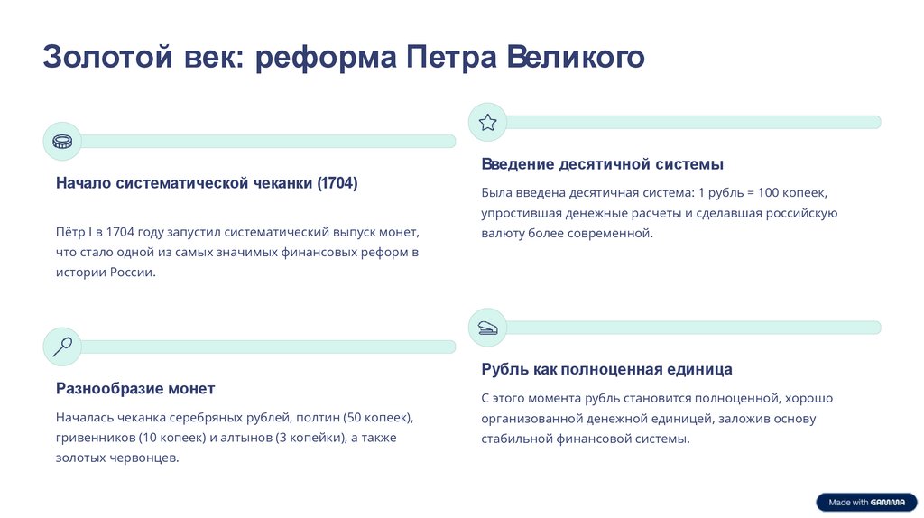 Пётр I в 1704 году запустил систематический выпуск монет,