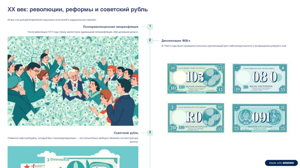 XX век: революции, реформы и советский рубльXX век стал для рубля временем серьезных испытаний и кардинальных перемен.