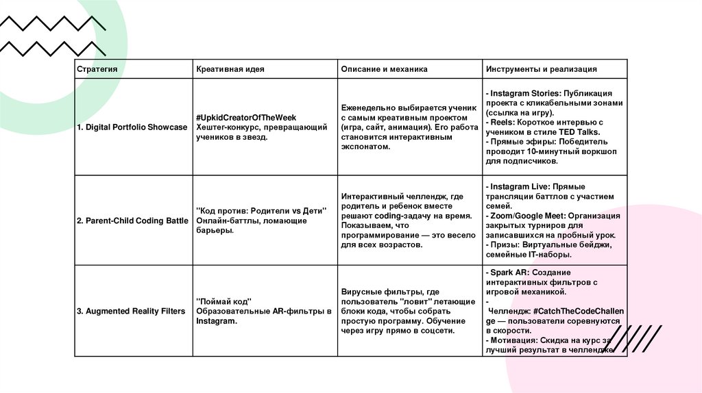 1. Запуск системной работы с социальным доказательством (Social Proof).• Почему это важно: для родителей, выбирающих онлайн-образование, доверие — ключевой фактор.
