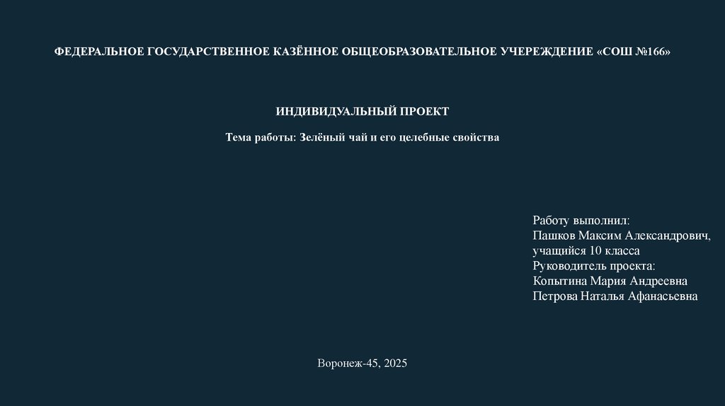 ФЕДЕРАЛЬНОЕ ГОСУДАРСТВЕННОЕ КАЗЁННОЕ ОБЩЕОБРАЗОВАТЕЛЬНОЕ УЧЕРЕЖДЕНИЕ «СОШ №166»ИНДИВИДУАЛЬНЫЙ ПРОЕКТ