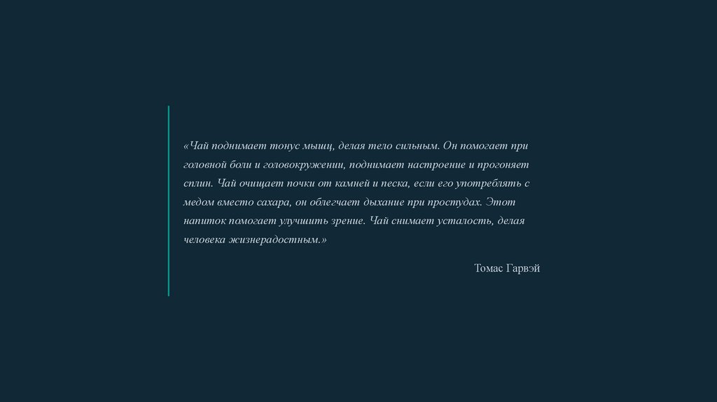 «Чай поднимает тонус мышц, делая тело сильным. Он помогает приголовной боли и головокружении, поднимает настроение и прогоняет
