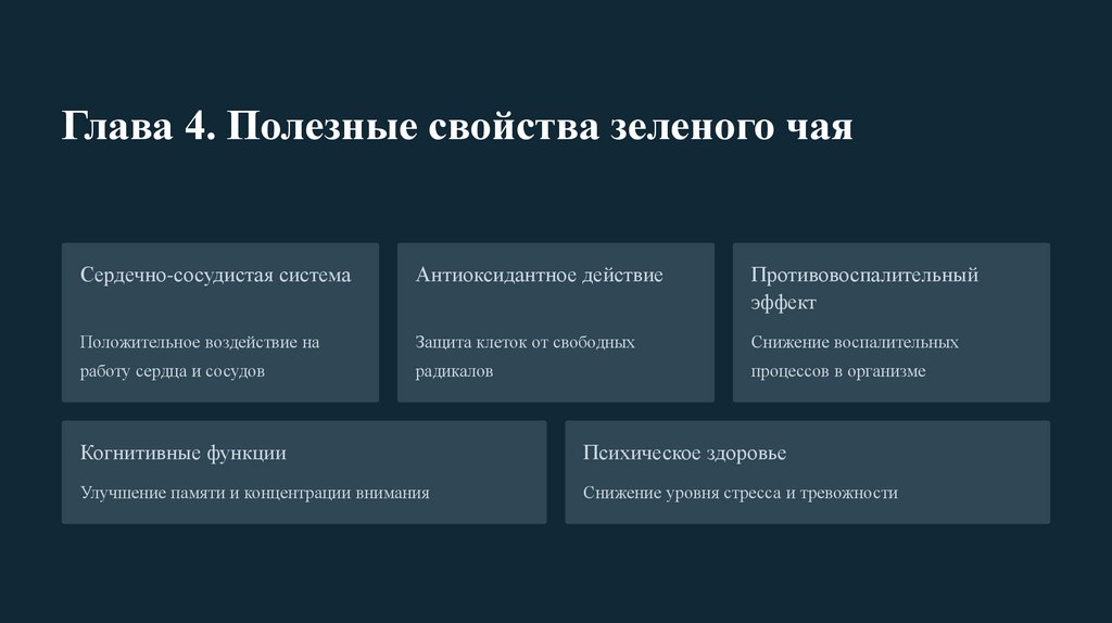 5. Рассмотреть влияние зелёного чая на психическое здоровье и уровень стресса.