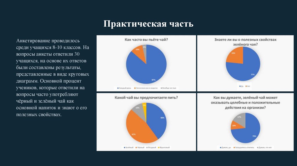 6. Провести опрос о привычках употребления зелёного чая среди определенной группы людей. (учащиеся 8-10 классов)