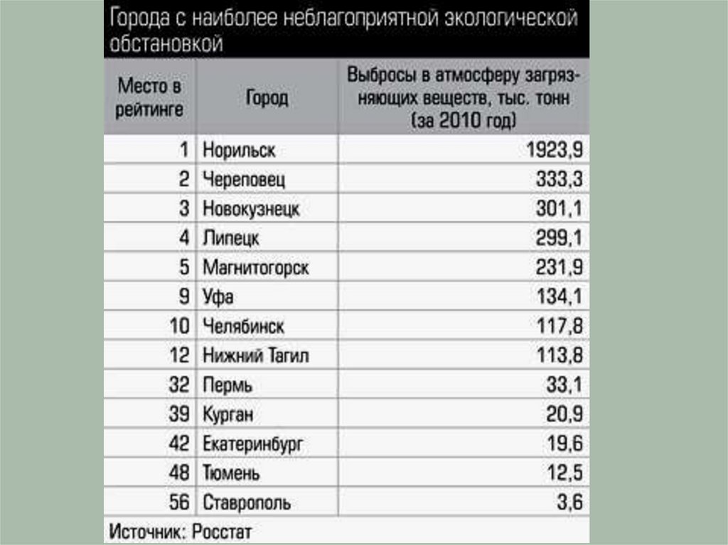 неблагоприятной экологической
