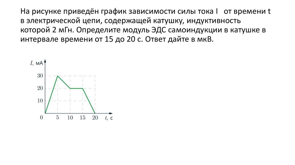 На рисунке приведён график зависимости силы тока I от времени tв электрической цепи, содержащей катушку, индуктивность