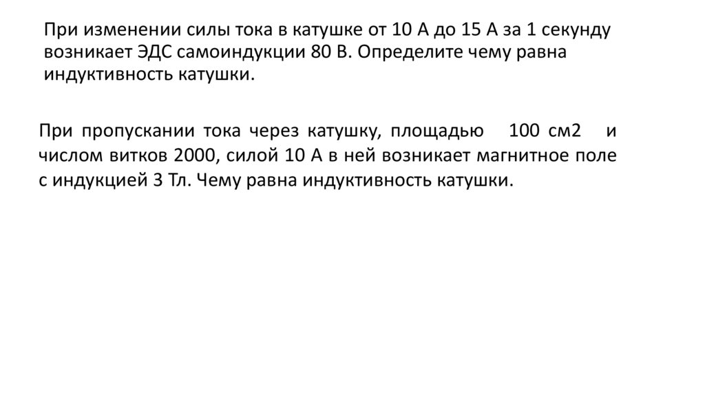 При изменении силы тока в катушке от 10 А до 15 А за 1 секундувозникает ЭДС самоиндукции 80 В. Определите чему равна