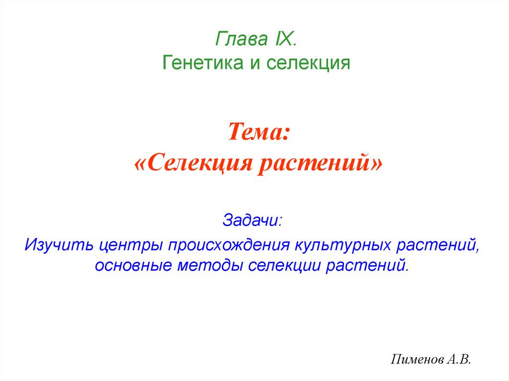 Глава IХ.Генетика и селекция