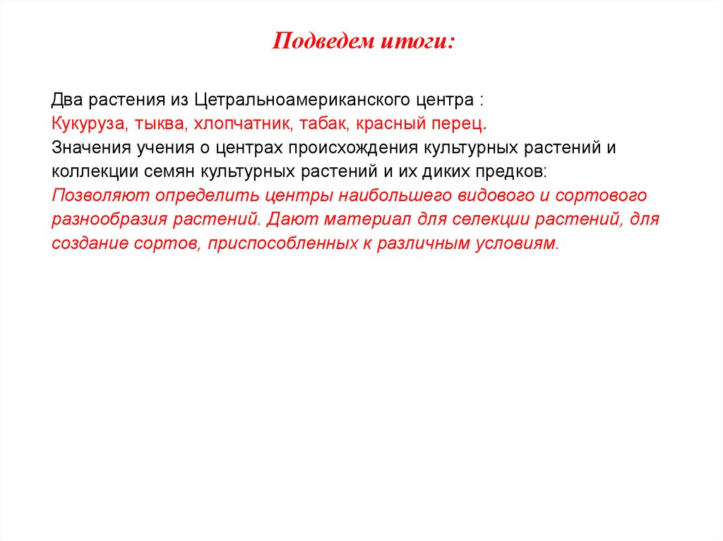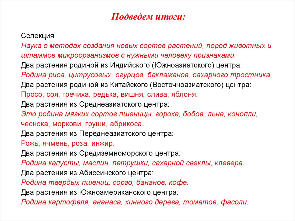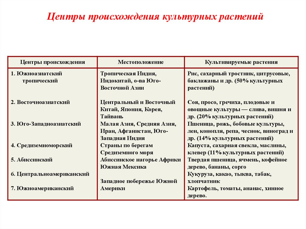 Центры происхождения культурных растенийЦентры происхождения