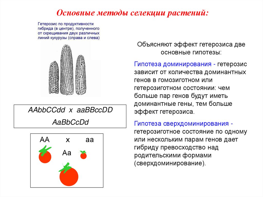 Основные методы селекции растений:Объясняют эффект гетерозиса две