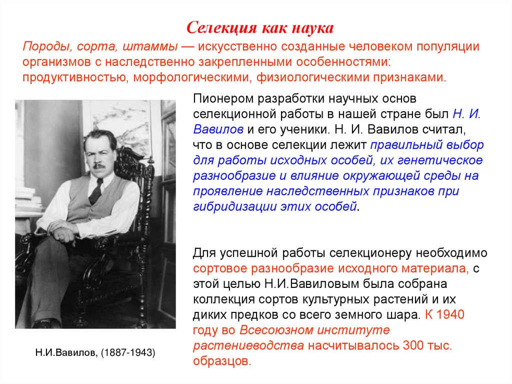 селекционной работы в нашей стране был Н. И.