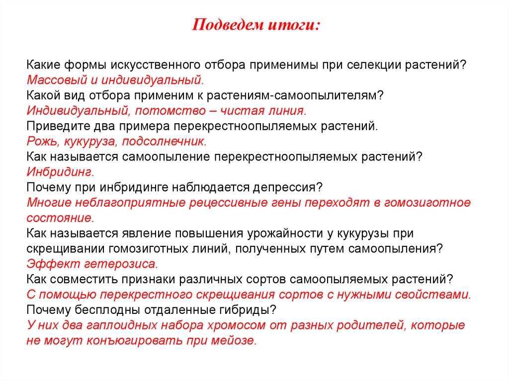 Подведем итоги:Какие формы искусственного отбора применимы при селекции растений?