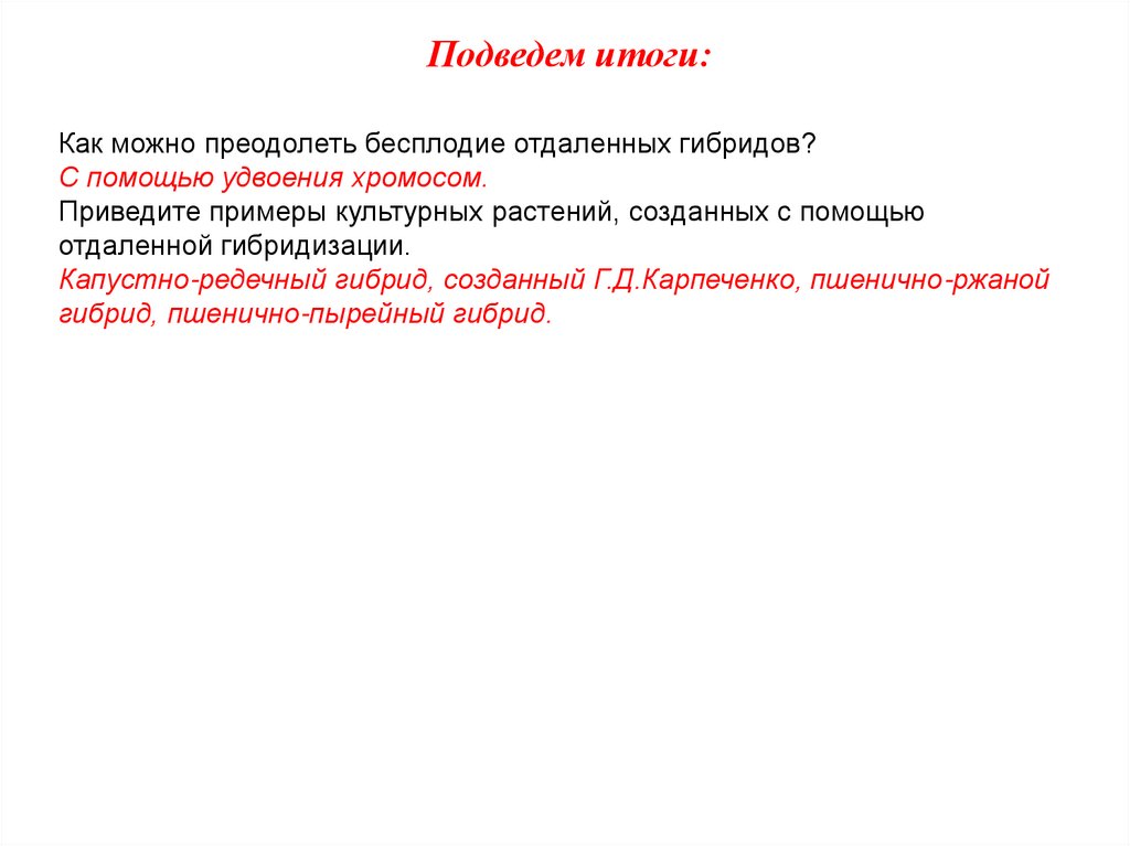 Подведем итоги:Как можно преодолеть бесплодие отдаленных гибридов?