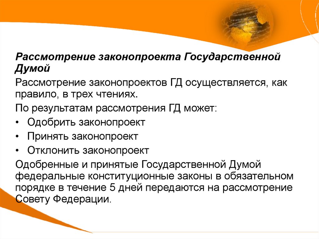 Презентация Механизм принятия федеральных законов РФ