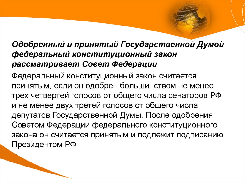 Одобренный и принятый Государственной Думойфедеральный конституционный закон