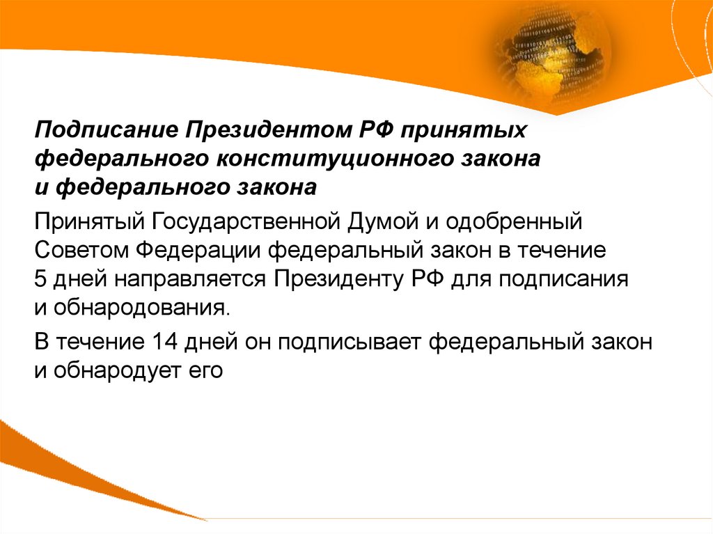 В течение 14 дней он подписывает федеральный закон