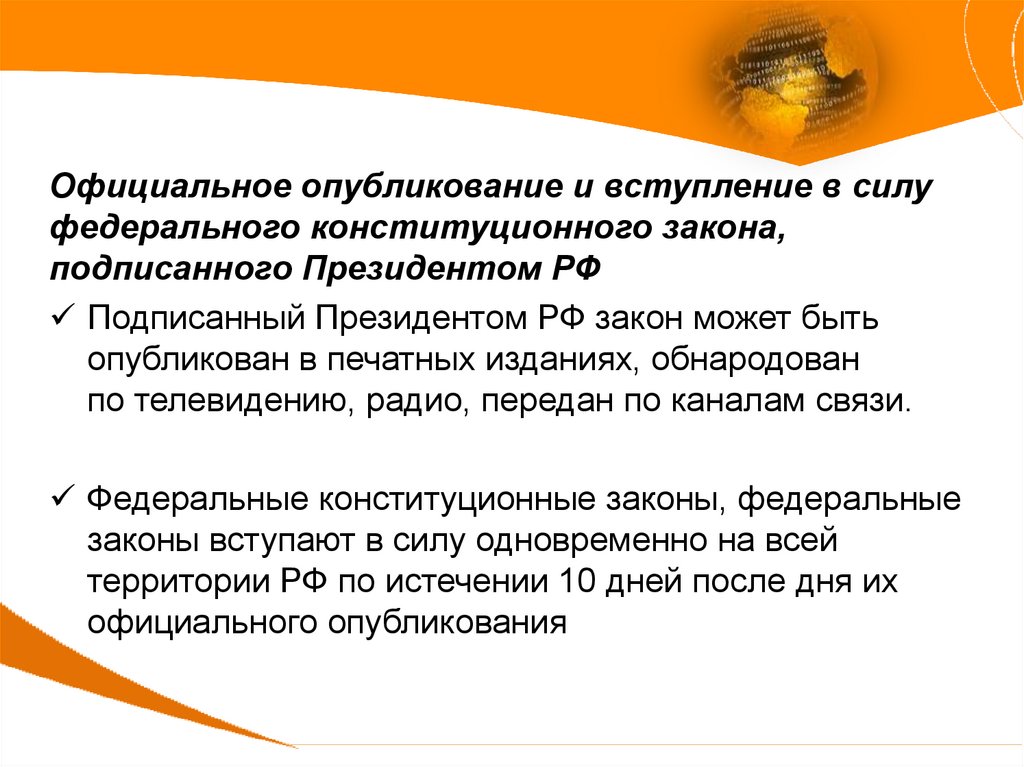 и вступление в силу федерального