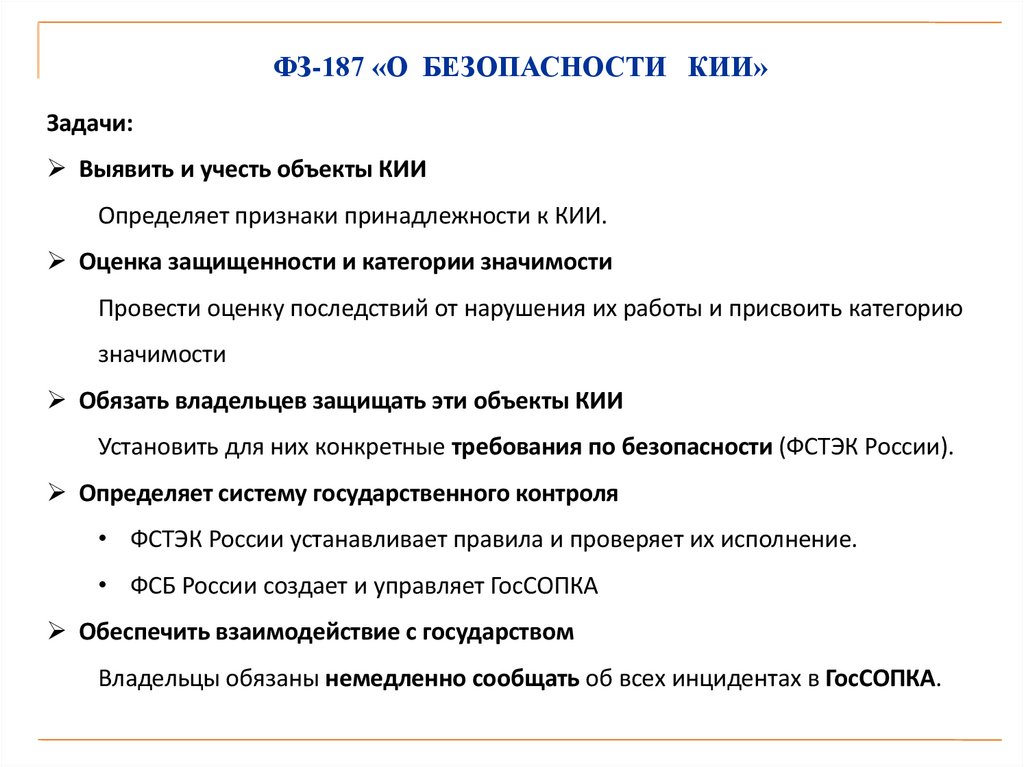 ФЗ-187 «О БЕЗОПАСНОСТИ КИИ»Задачи: