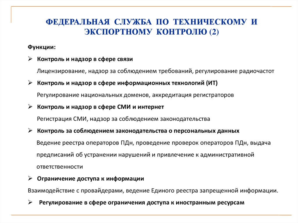 технологий и СМИ. Роскомнадзор также регулирует защиту персональных