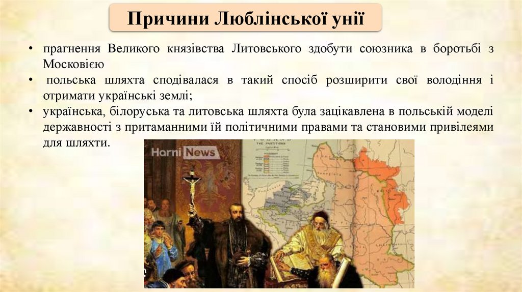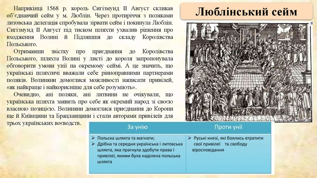 • 4) у чому полягала суперечність наслідків Люблінської унії для