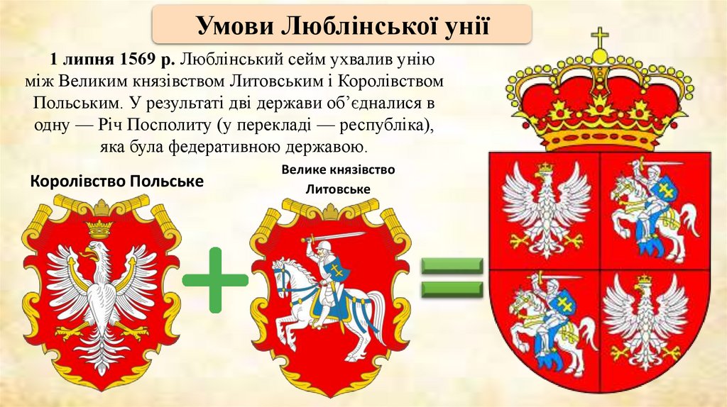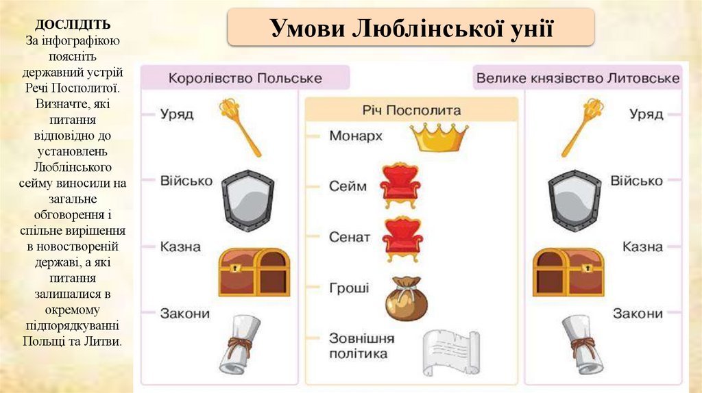 Опрацюйте історію укладення Люблінської унії та визначте: