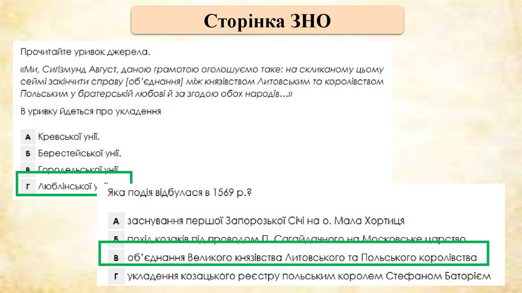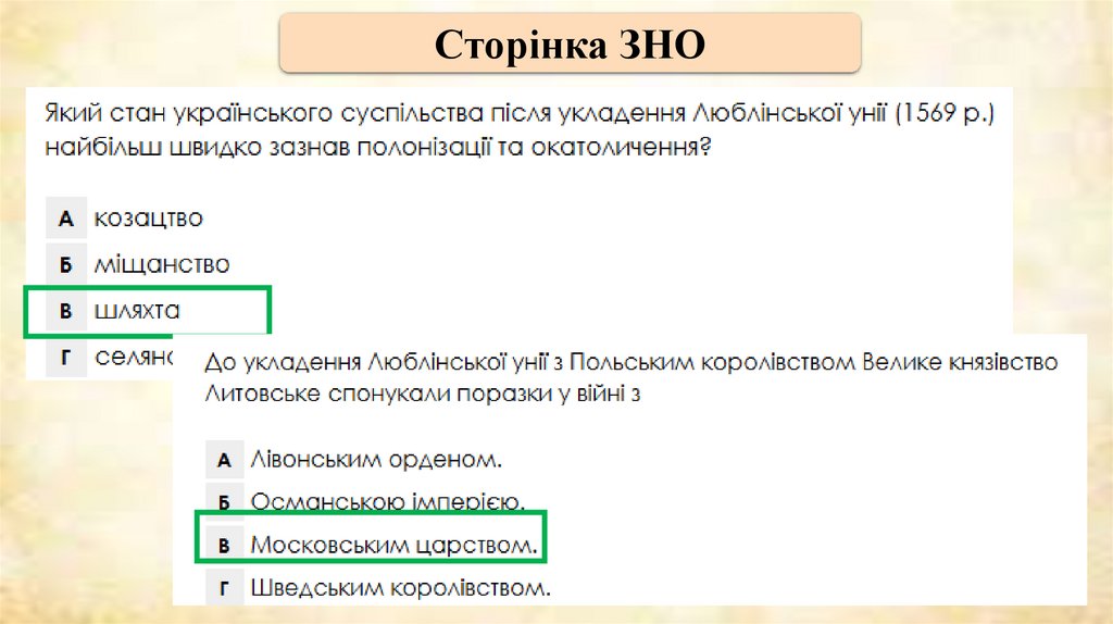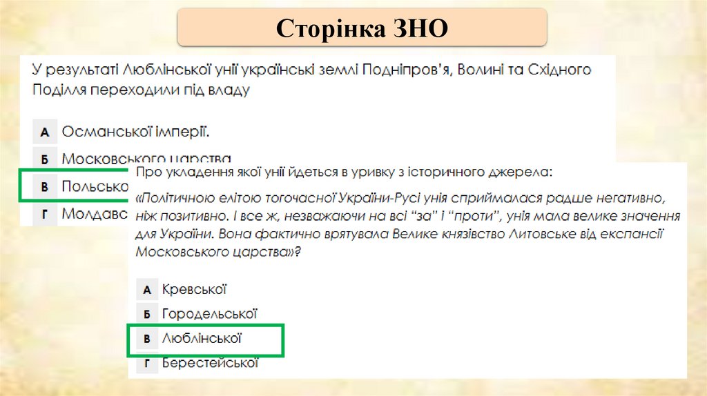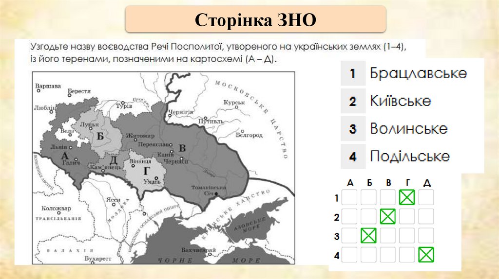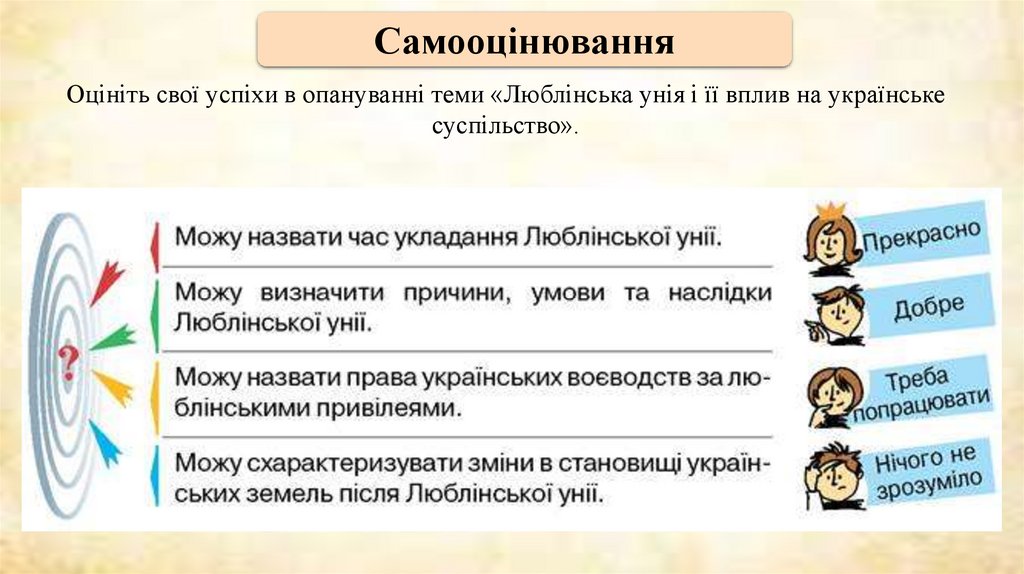 СамооцінюванняОцініть свої успіхи в опануванні теми «Люблінська унія і її вплив на українське